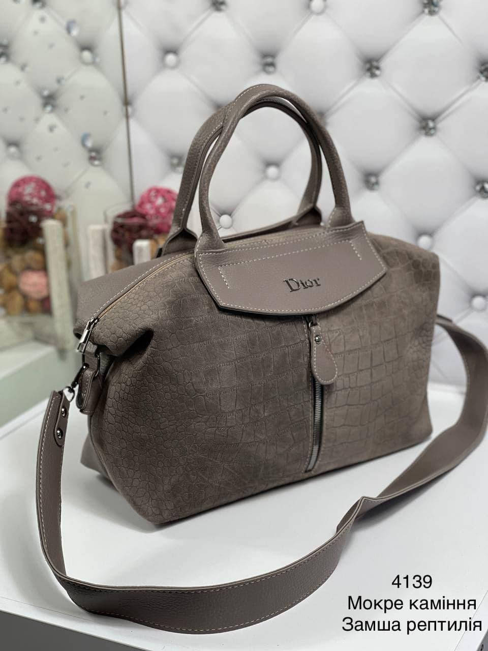 Большая женская сумка саквояж под кожу рептилии вместительная через плечо из натурального замша и кожзама с логотипом известного бренда с ручками и ремнем на молнии