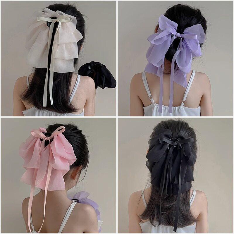 Большая заколка для волос с бантом и блестящей шелковой лентой на затылке, заколка в виде акулы, модные аксессуары для волос Black butterfly
