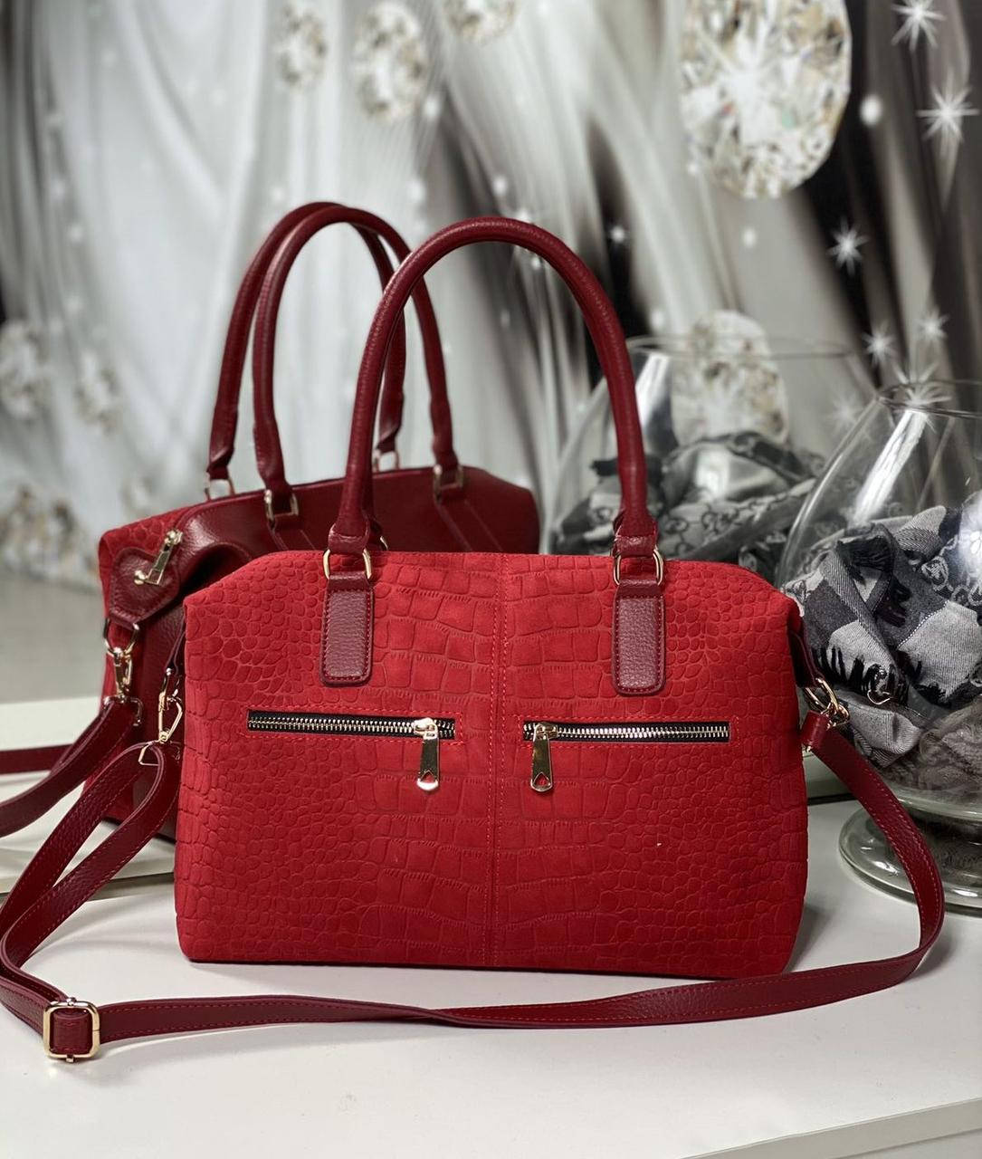 Большая замшевая женская сумка красная стильная городская натуральная замша+кожзам