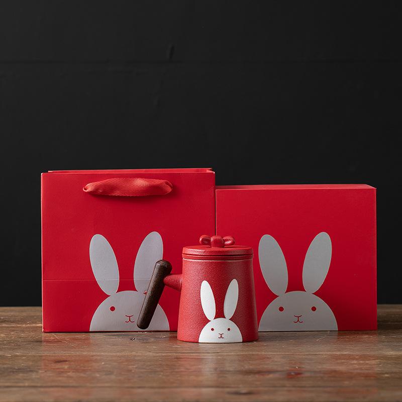 Большая красная керамическая офисная чашка для воды с высоким внешним видом для отправки девушке, милый кролик с фильтром и крышкой, чашка для разделения чая 301-400ml