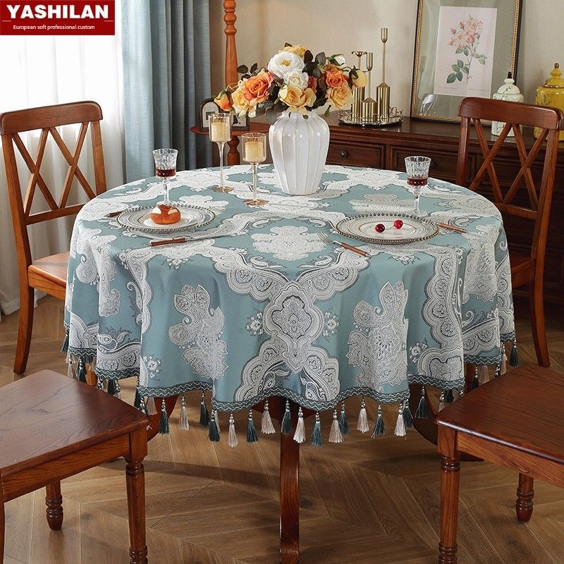 Большая круглая Скатерть для стола Тканевая круглая Скатерть Изысканная Доступная Роскошь Пасторальная Американская Скатерть Скатерть для Кофейного столика Хлопок и Лен Light Blue Turntable set 80cm