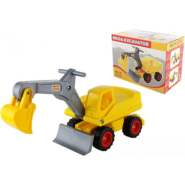 Большая машинка Полесье "Мега-экскаватор" колёсный, в коробке, Желтый