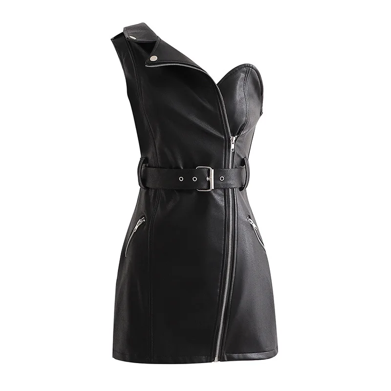 2020 new arrivals fashion fancy PU leather sexy asymmetrical design women bodycon casual dresses