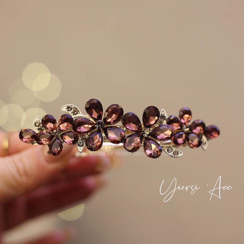 Большая пружинная шпилька: Полузавязанная горизонтальная заколка для затылка или конского хвоста, идеально подходит для причесок мам. 8.5cm Glass Raindrop Flower Spring Clip вино красного