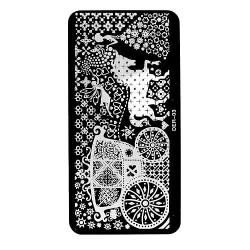 Большая прямоугольная пластина для штампов со схемами тиснения ДЕР-03., AllePaznokcie