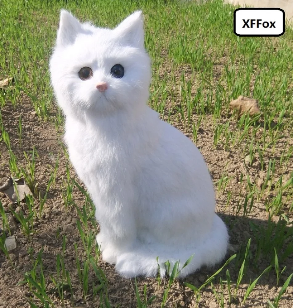 Большая реальная жизнь белая кошка модель пластик и мех милый большой сидящий Кот подарок около 35x15 см xf1405