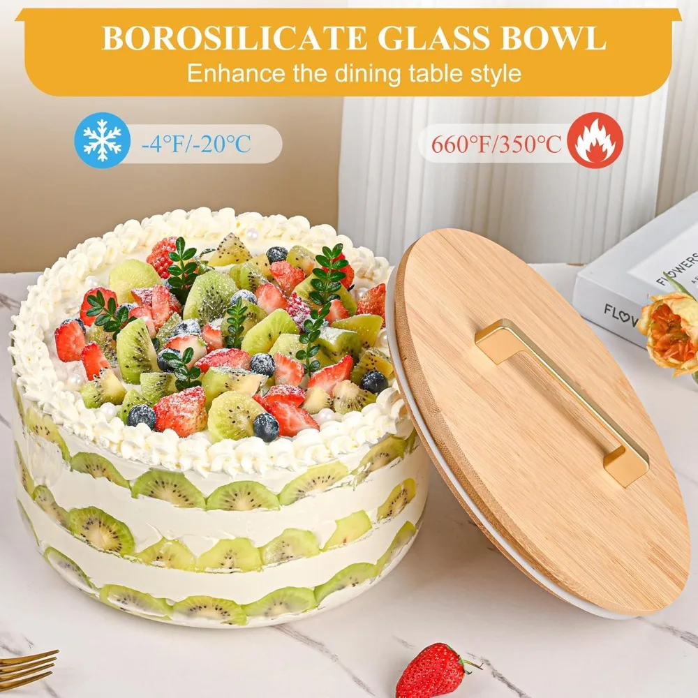 Большая стеклянная дорожка с герметичной крышкой, сервировочная миска для салатов на 155 унций для выпечки, вечеринок и семейного использования