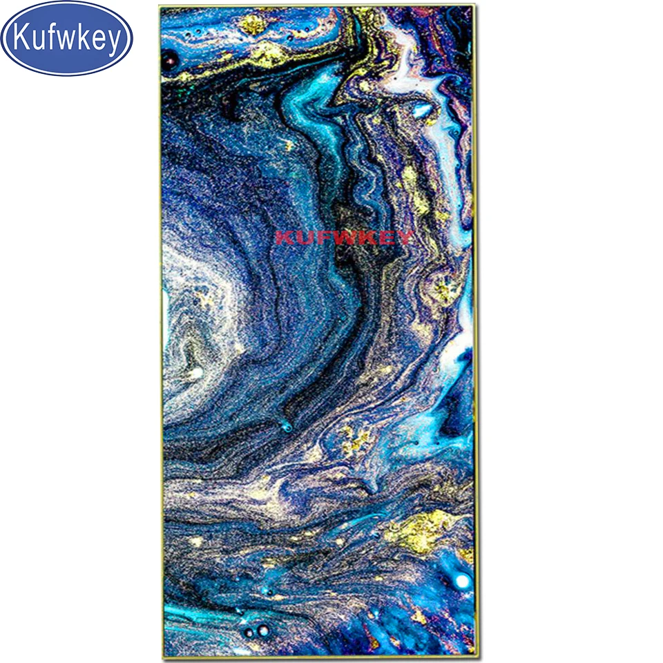 Большие картины, украшение для гостиной, абстрактная синяя Золотая волна, алмазная живопись, полная квадратная Круглая Мозаика, алмазная вы...