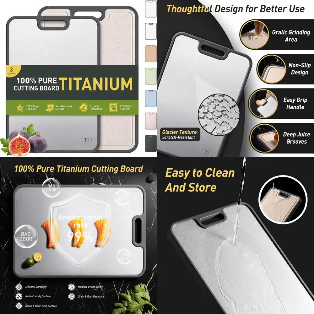 Большие и маленькие кухонные разделочные доски 2-в-1 из чистого титана с ручкой — разделочный и мясной блок для устойчивости к пятнам