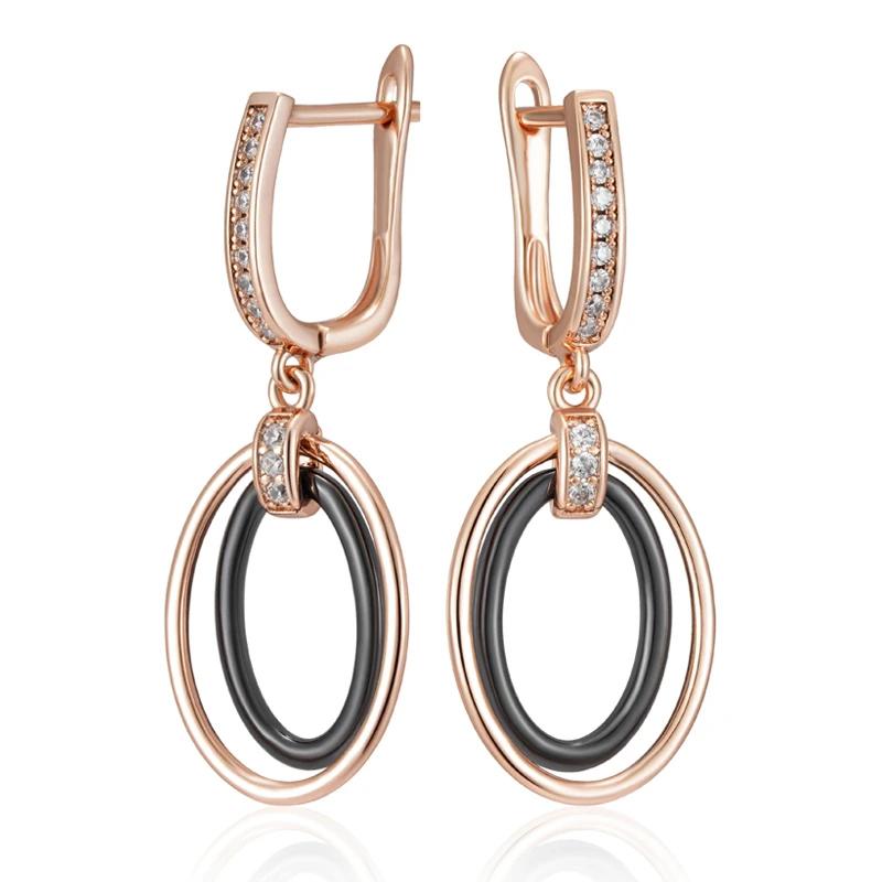Большие овальные черные керамические золотые серьги-подвески с белым цирконием для женщин, эффектные украшения для вечеринок, блестящие аксессуары чёрный