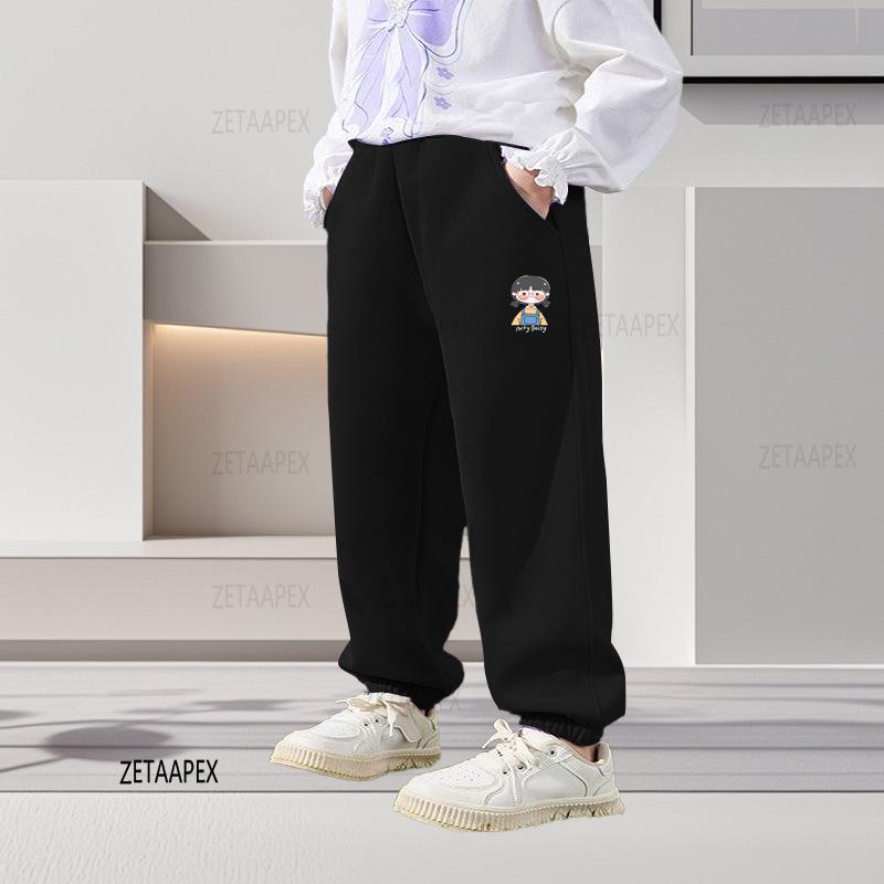 Большие размеры, высокая эластичность, спортивные штаны для девочек - Теплые, бархатные джоггеры для весны и осени XL (120-135 lbs)
