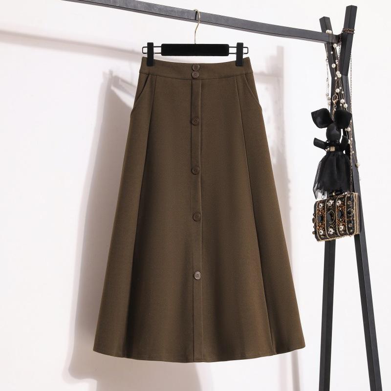 Большие размеры женская зимняя новая омолаживающая утягивающая юбка А-силуэта Fat Mm с высокой талией средней длины Большая юбка-зонтик XXXXL коричневый