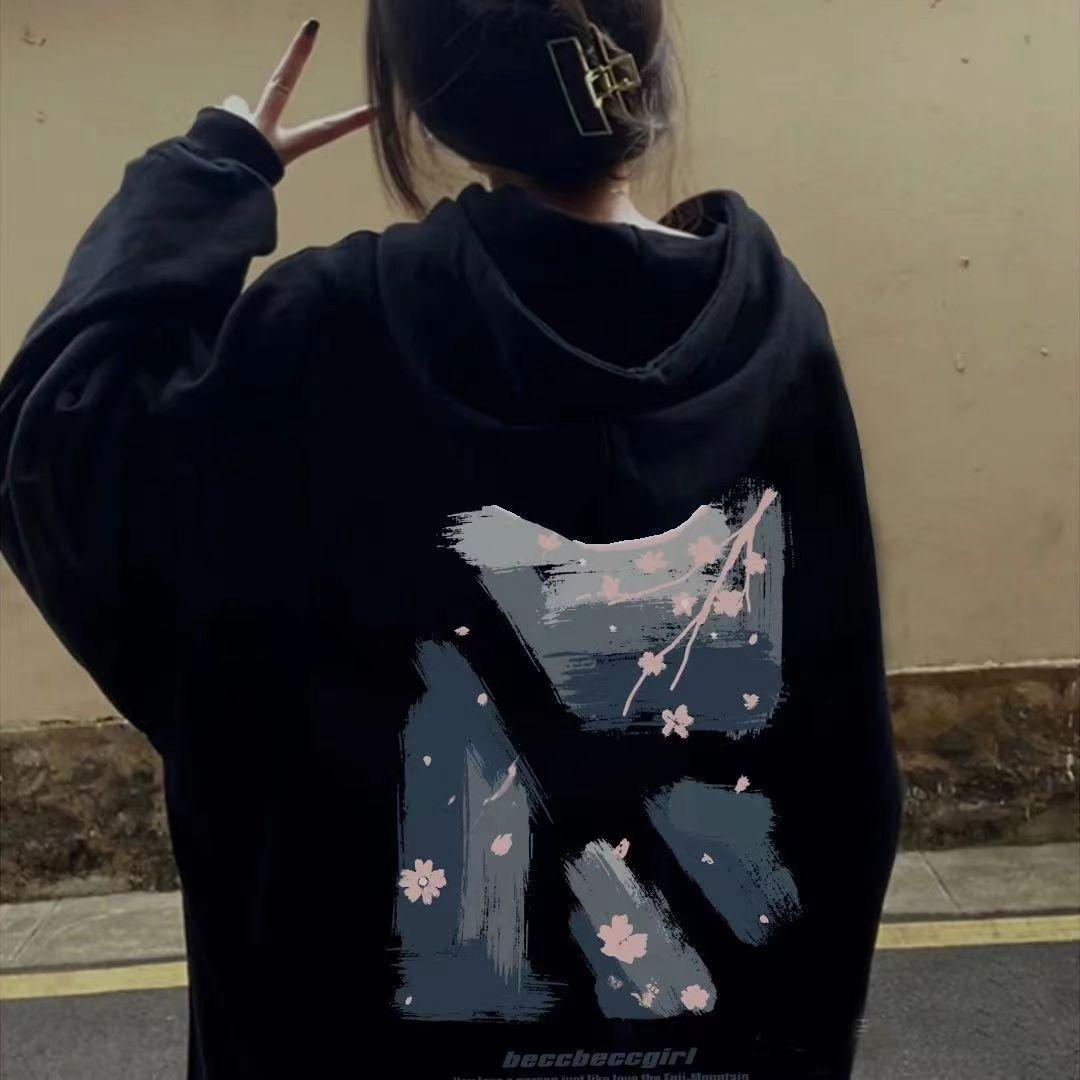 Большие размеры женские толстовки с капюшоном осень и зима карман шнурок с капюшоном толстый утепленный топ с длинным рукавом для пары 3XL чёрный