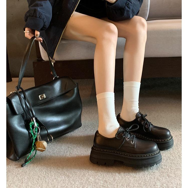 Большие размеры ретро-платформа маленькие кожаные туфли женские 2025 весна и осень новые британские студенческие туфли с круглым носком на шнуровке женские импортные торговые 35 чёрный