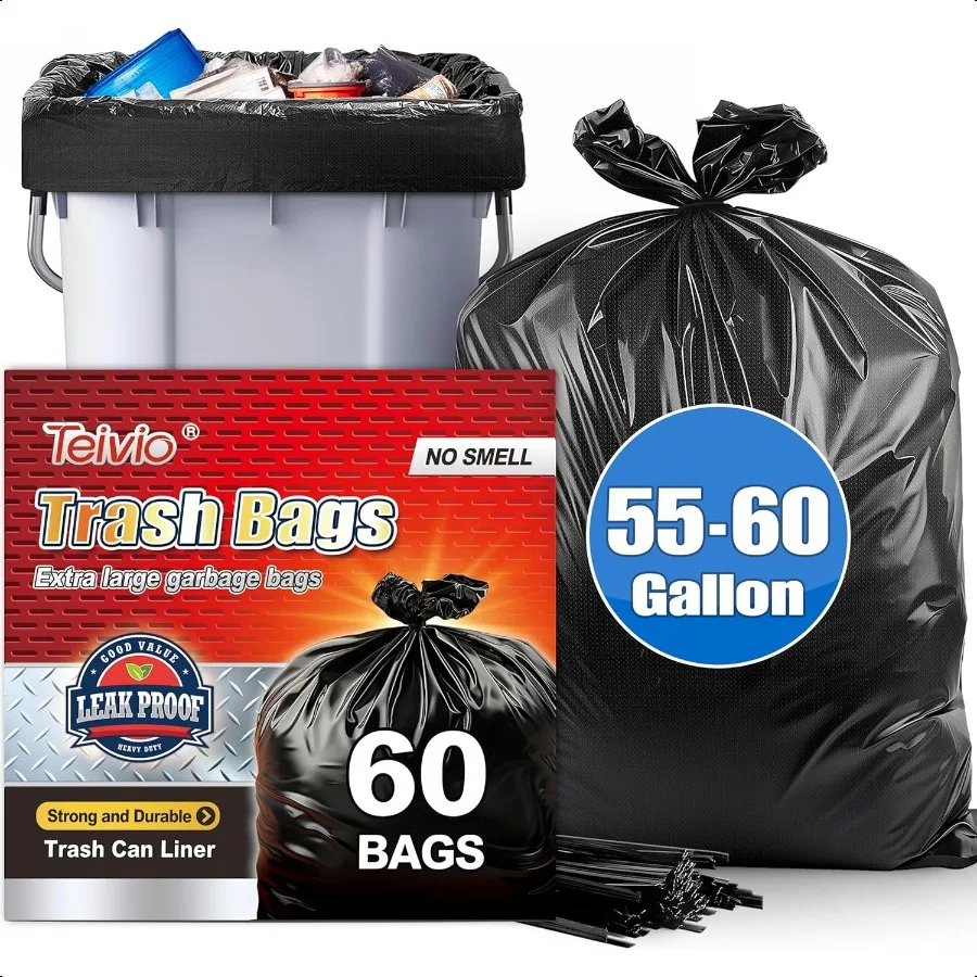 Большие черные мешки для мусора, 5560 галлонов, 60 шт., промышленные прочные мешки для мусора, очень большие мешки для газона и листьев, уличные коммерческие T