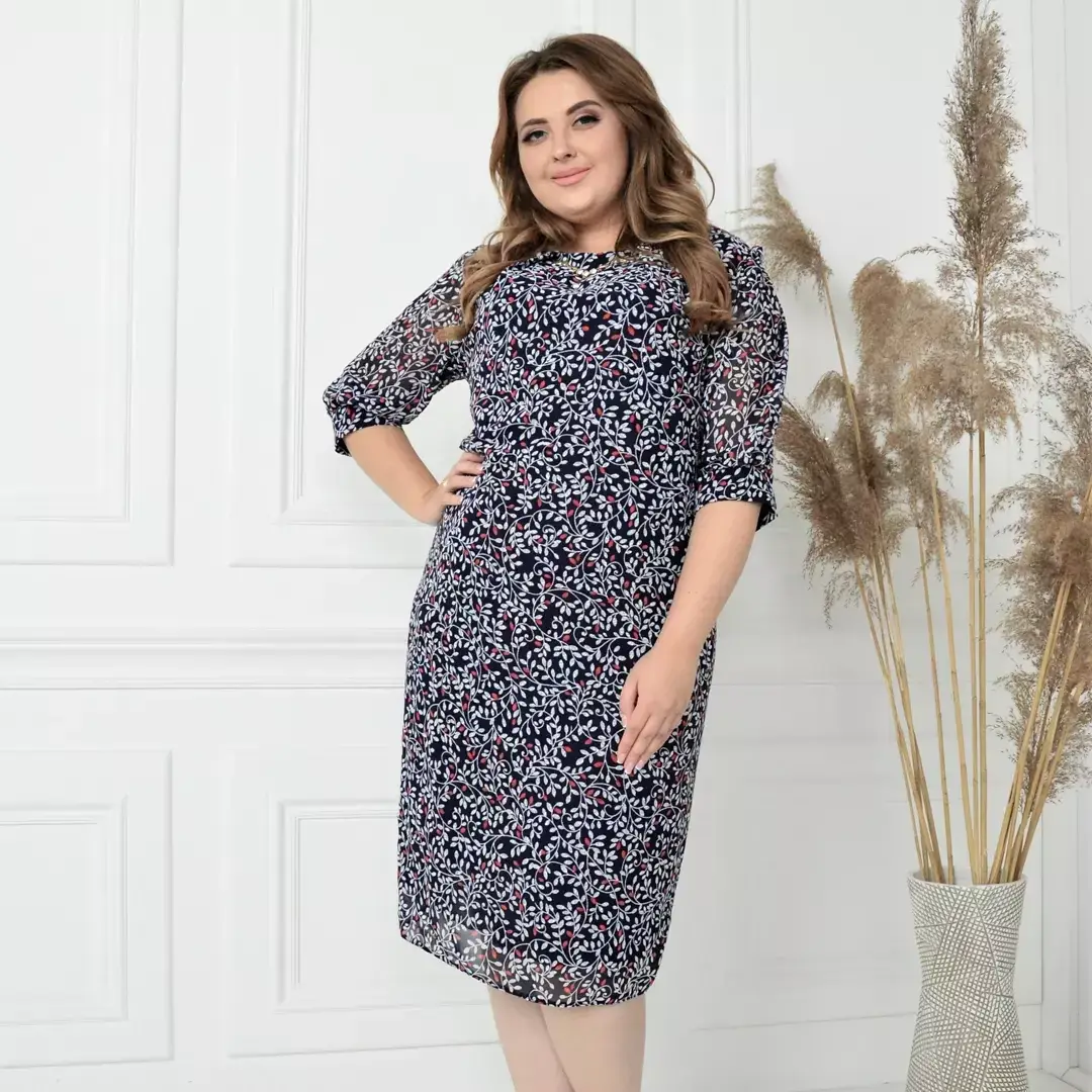 Большого размера платье, прямого кроя, длина ниже колен из шифона