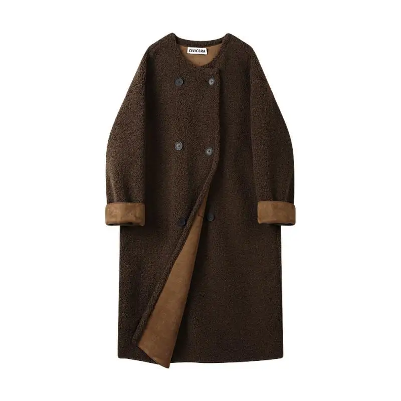 Большие размеры, ленивое шикарное шерстяное пальто с отделкой из козьего меха, женская зимняя ретро-толстая куртка средней длины с двойным лицом