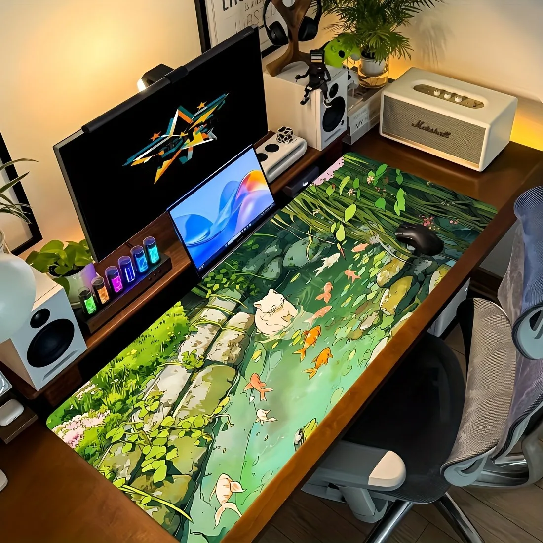 Большой коврик для мыши с дизайном Naughty Cat and Koi pond, нескользящая резиновая основа толщиной 2 мм, материал из натурального каучука, прямоугольная игровая мышь.