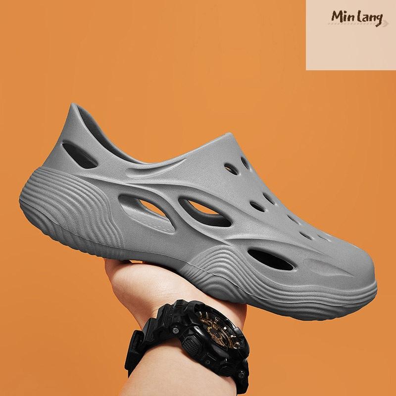 [Большой размер] Модные мужские платформенные туфли с отверстиями, уличная пляжная обувь, сумка, крутые тапочки, домашние тапочки 40/41 чёрный