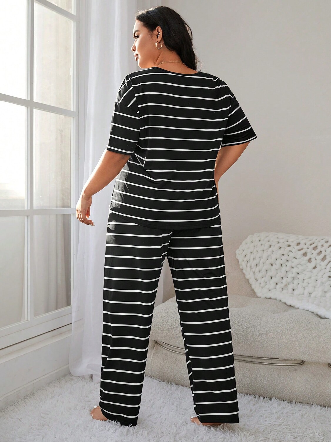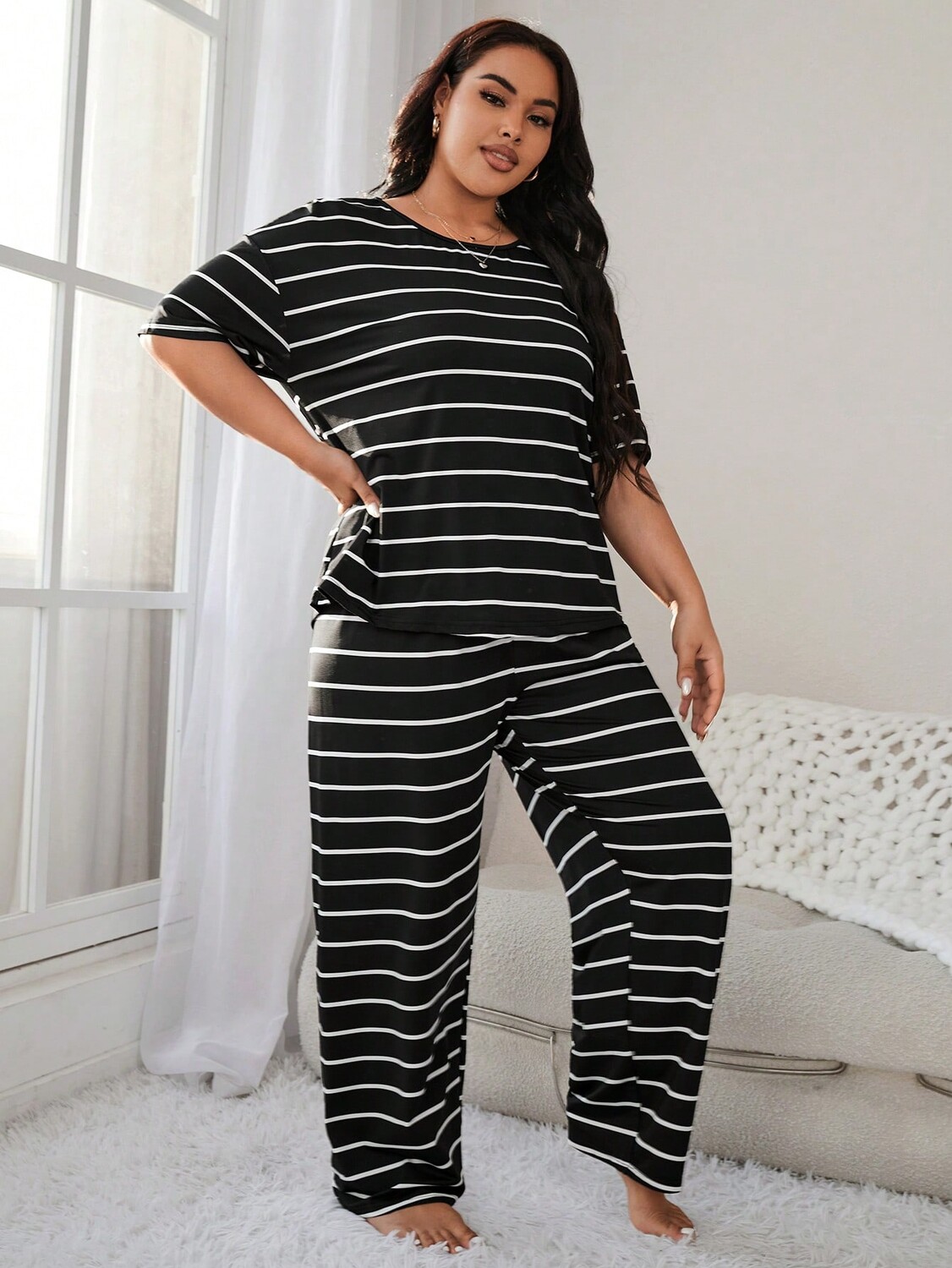 Большой размер, в полоску, с открытыми плечами, без рукавов, футболка и длинные брюки, пижамный Комплект, черно-белый