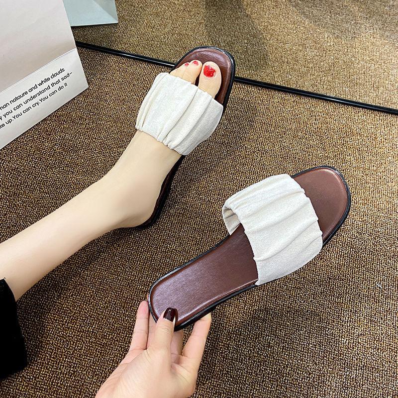 Большой размер крутые тапочки женские легкие на плоской подошве нескользящие пляжные в иностранном стиле тренд для улицы французский высококлассный сенс сандалии на одно слово аромат 42
