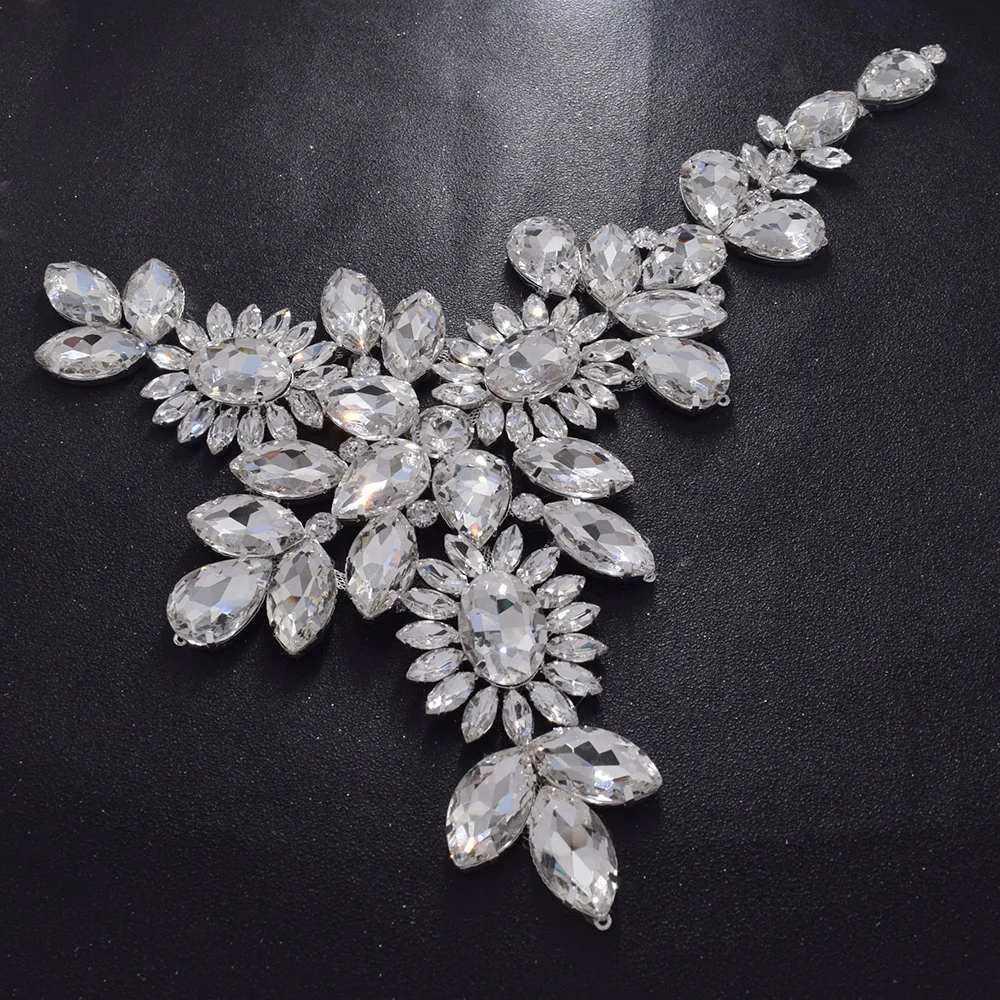 Большой размер 1 шт. кристально чистые Стразы стеклянные аппликации для женского платья стеклянные пришитые патчи роскошные серебряные бле...