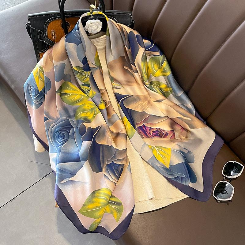 Большой шелковый шарф для женщин - Универсальная шаль и снуд для всех сезонов, Идеальный подарок на день рождения для мамы и пожилой женщины 110x110 cm