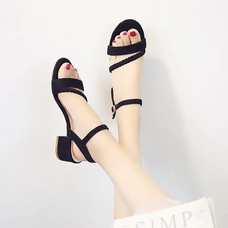 Босоножки женские Одно слово на среднем каблуке Обувь Пряжки Низкий Бежевый Открытый носок Лето 2025 Высокая женская обувь Уличная по акции 39
