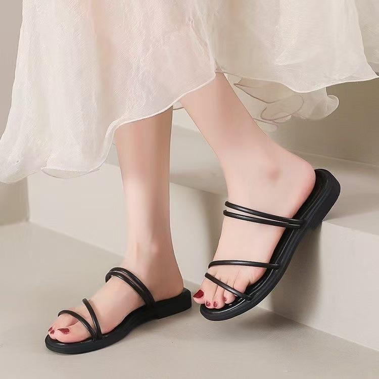 Босоножки феи женские летние приливные двухсторонние модные уличные шлепанцы новые на плоской подошве универсальные шлепанцы на перемычке 40 чёрный