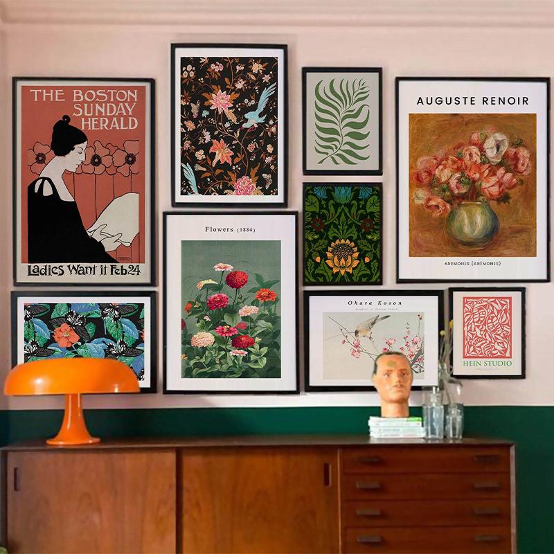 Ботаническая галерея, цветочный рынок, эклектичный набор с принтами на холсте, природа, скандинавский винтаж, эстетический декор для гостиной, кафе, подарок на день рождения