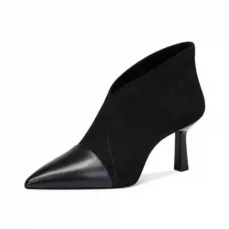Ботильоны на высоком каблуке во французском стиле Новые осенне-зимние замшевые с острым носком Слипоны Тонкий высокий каблук Телесные ботильоны 39 чёрный