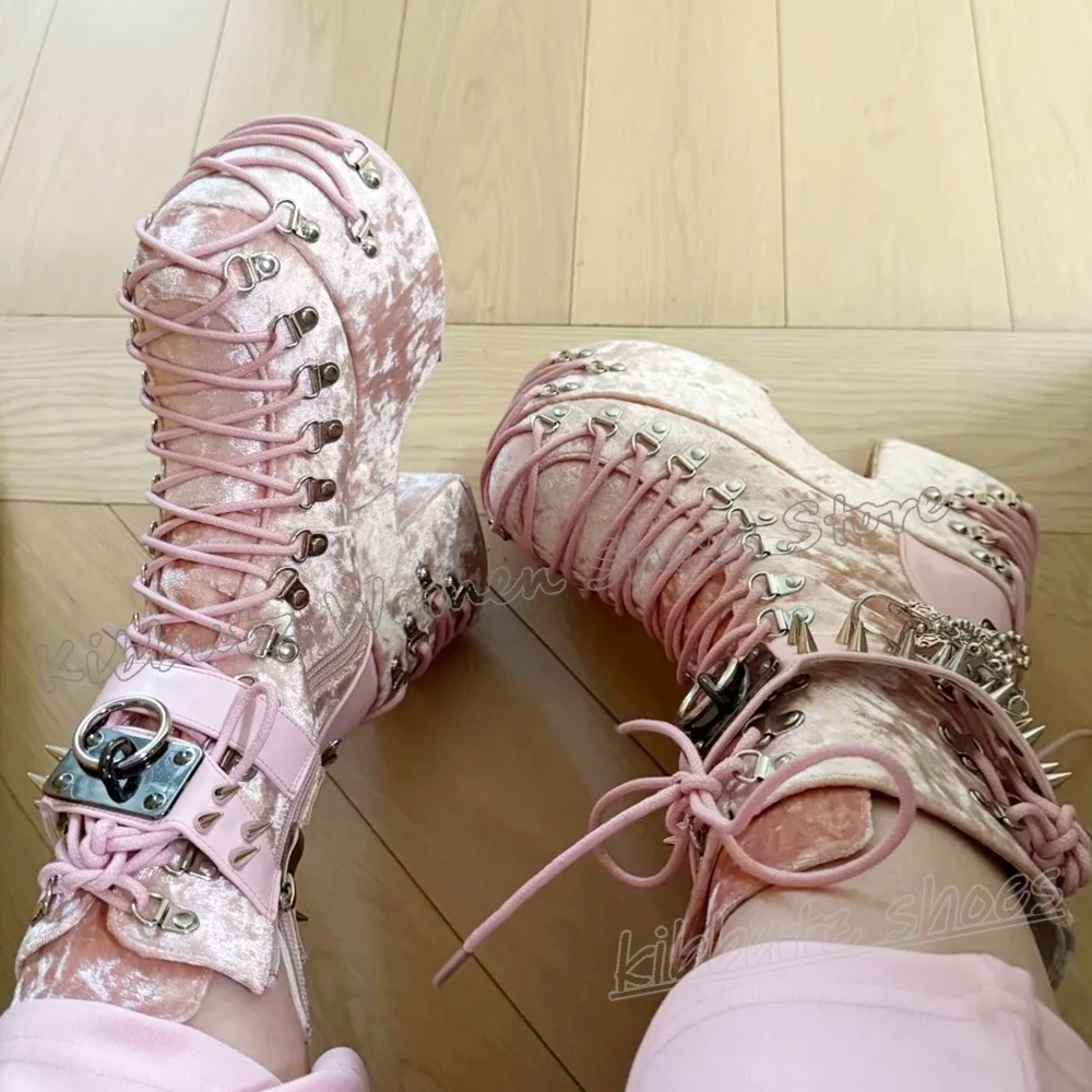 Ботильоны на платформе с заклепками и пряжкой ремня, круглый носок, массивный каблук, однотонная модная элегантная женская обувь в стиле панк-рок, пикантная лаконичная женская обувь, новинка