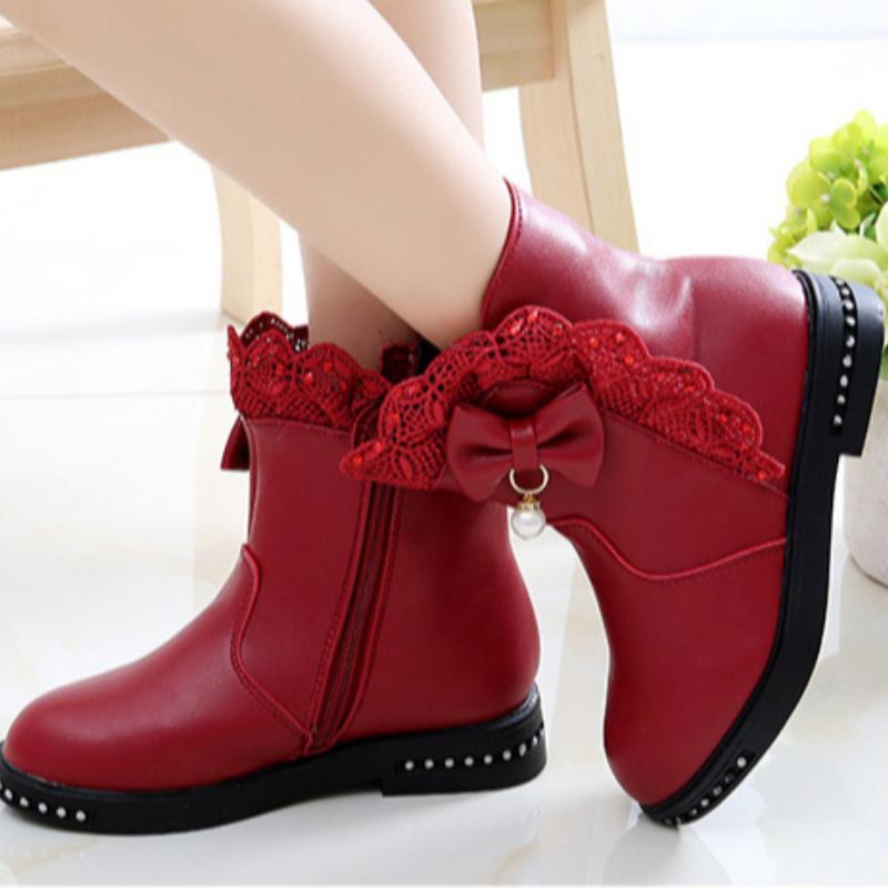 Ботинки для девочек Осень и Зима Корейские Ботинки Принцессы Полусапожки Детские Зимние Ботинки Плюшевые Ботинки Средней Высоты для Девочек 27
