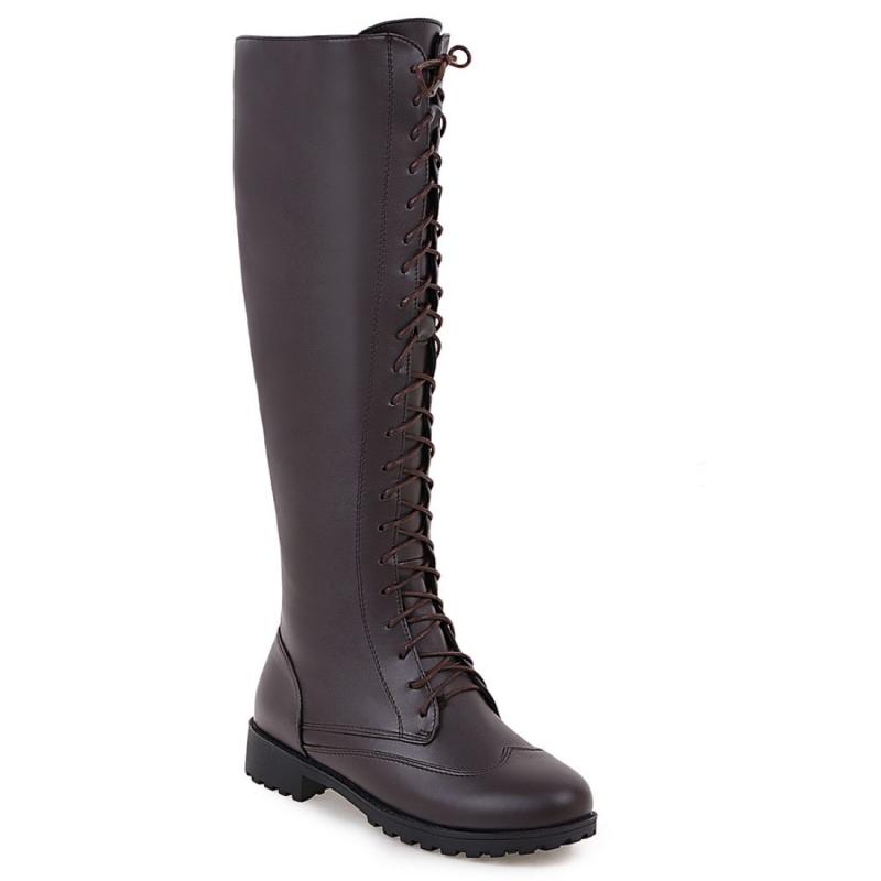 Ботинки до колена на шнуровке Женская зимняя обувь Низкий каблук Женские высокие сапоги Черные Высокие Длинные Обувь для верховой езды Большой размер 39