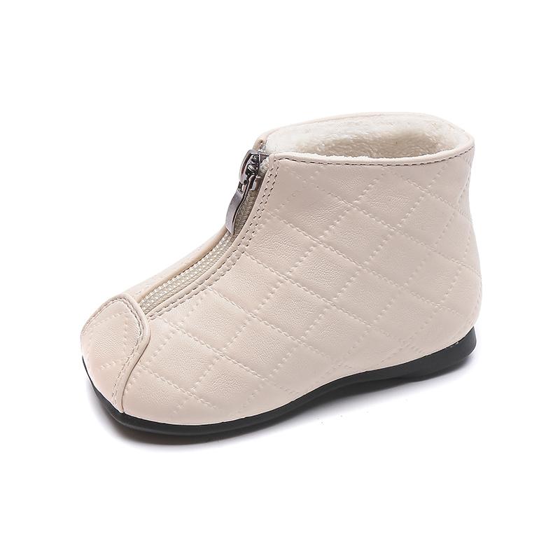 Ботинки из кожи для девочек, однотонные, с молнией спереди, детские модные короткие ботинки, простые, с квадратным носком, детские, теплые, хлопковые, зимние, новые 25 бежевый