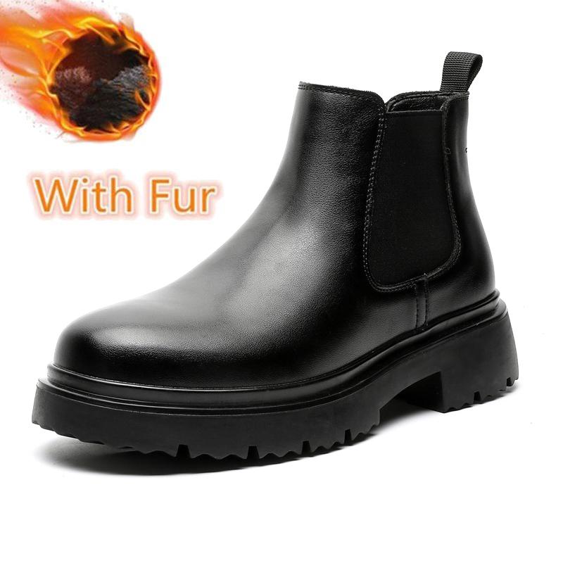 Ботинки челси из натуральной кожи, классические мужские ботинки в стиле ретро с острым носком, теплые зимние ботинки с плюшевым мехом, зимние ботинки на платформе без застежек 44