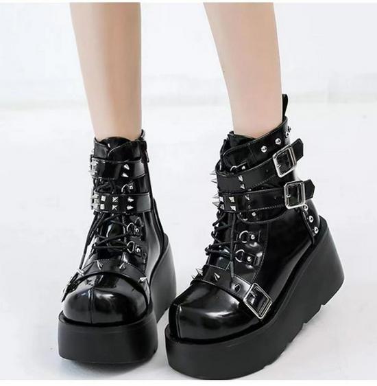 Ботинки Demonia Round-Toe с пряжкой на ремешке и шнуровкой — на толстой подошве, суперкрутые, в стиле ночного рыцаря для горячих девушек 43 чёрный