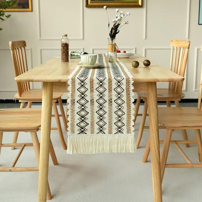 Бохо скатерть для домашнего декора бежево-коричневого плетения, фермерская скатерть с кисточками для богемного обеденного декора, декора спальни 30*160CM коричневый