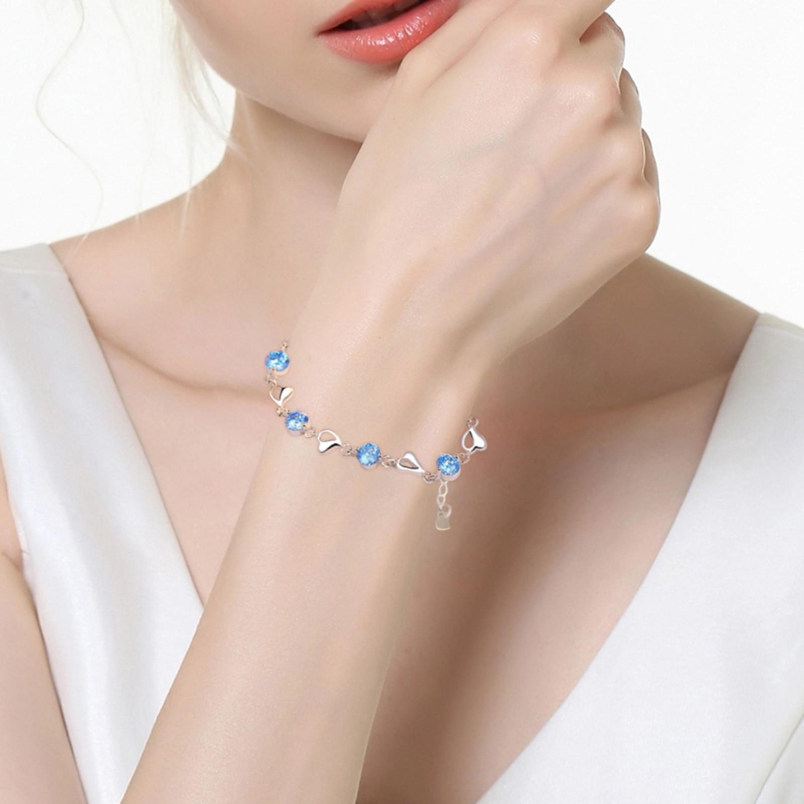 Браслеты в форме сердца, браслет с камнями по месяцу рождения или кристаллами для женщин, ювелирные подарки для жены, подарок на день рождения или день святого Валентина для нее, мамы и сестры One Size синий