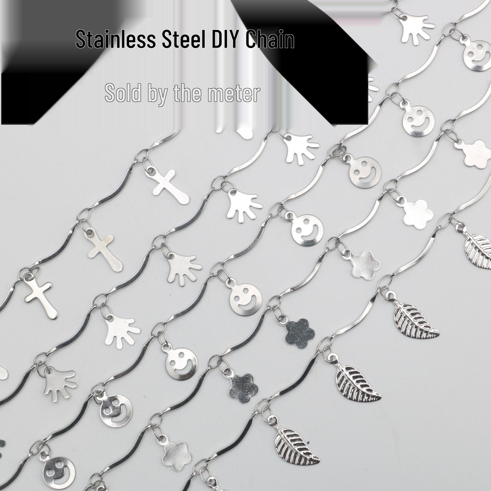 Браслет/Анклет/Ожерелье из нержавеющей стали с цепочкой «Улыбающееся лицо и цветок сливы» и кисточками Model 3# Chain per Meter