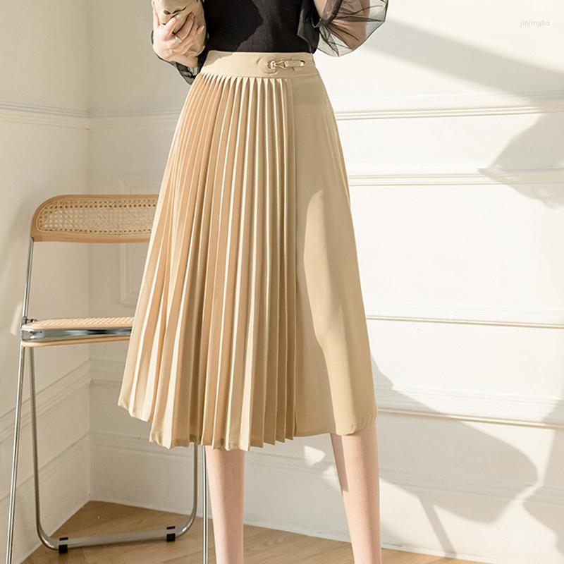 Skirts Pleated Skirt Female 2023 Summer Korean Fashion Women Solid High Waist Zipper Elegant Midi Woman Vetement Femme, Black