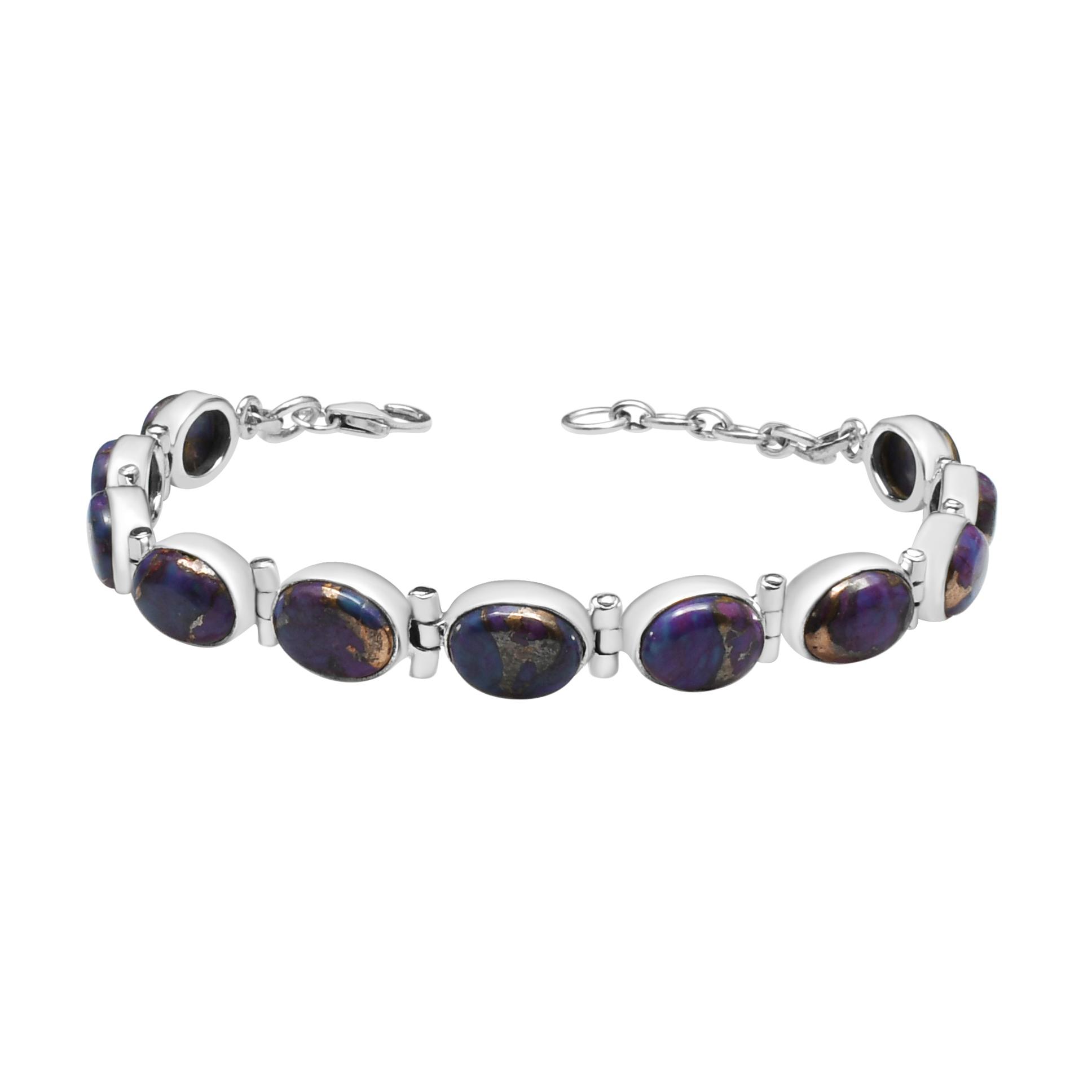 Браслет из натурального фиолетового бирюзового камня, серебро 925 пробы, ювелирные изделия ручной работы, регулируемая длина, подарок для мамы, пасхальный подарок фиолетовый