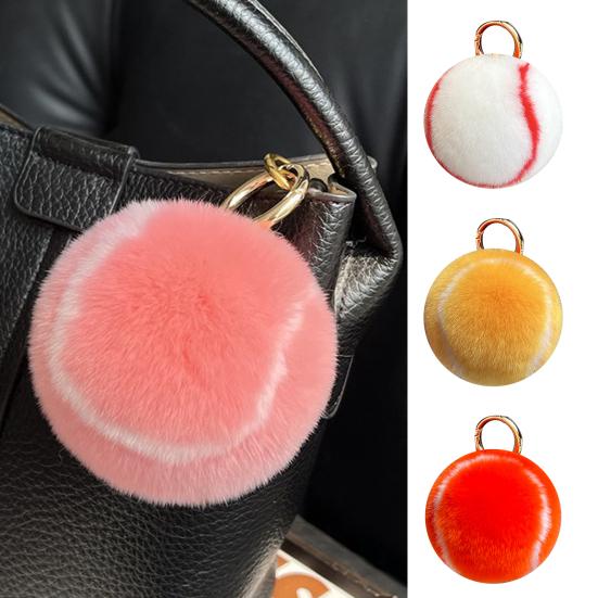 Брелок в виде теннисного мяча с плюшевым кулоном из натурального меха кролика Рекс, новинка, подарок для спортивных болельщиков, прочное, мягкое, компактное, многофункциональное украшение жёлтый