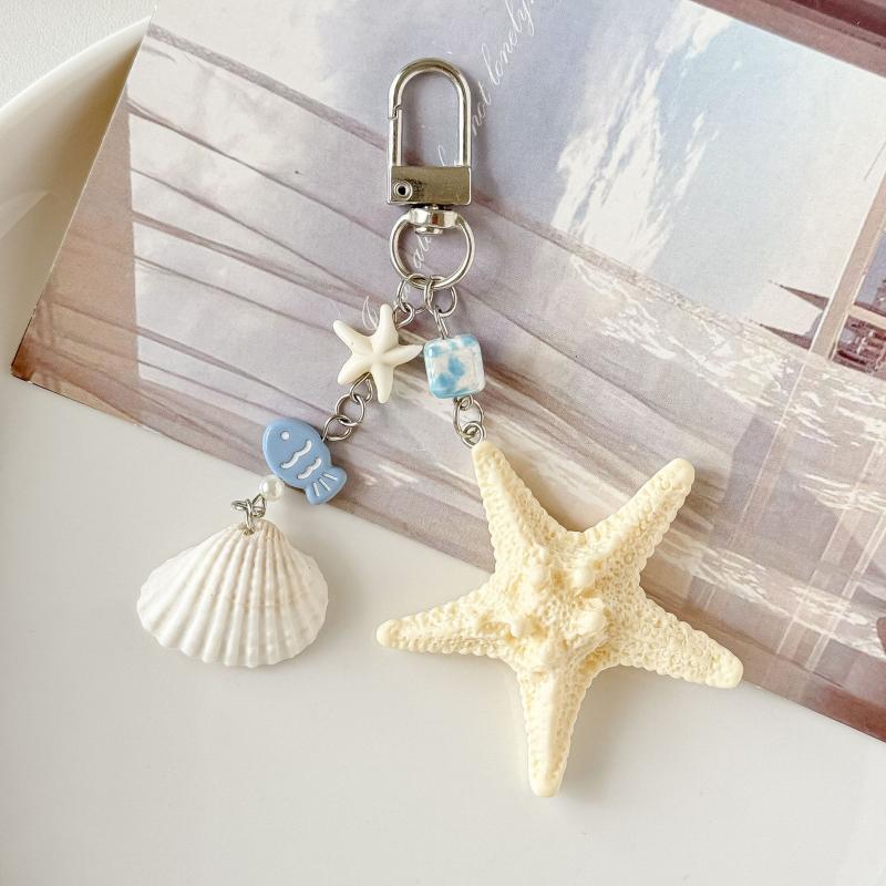 Брелок в океанском стиле, ракушки, морская звезда, цепочка для телефона, шарм, кольцо для ключей, украшение, шнурок против потери, декор для сумки