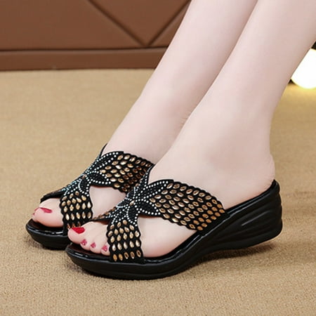 Summer Slippers Women Sandals Plafrom Sandals Ladies Slip-On Flip Flops Shoes Leather Peep Toe Female Sandalias Zapatos Mujer