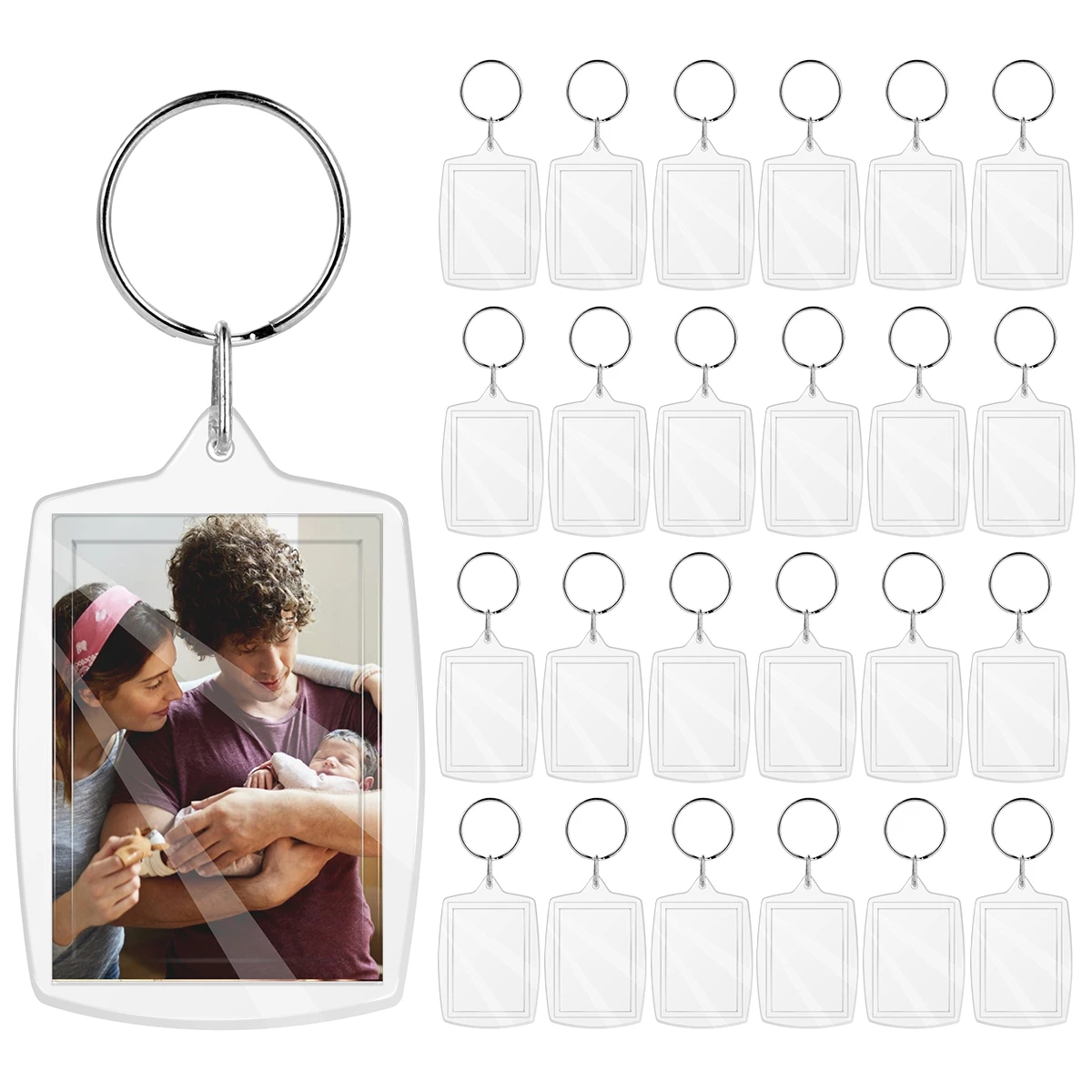 Брелок для ключей «сделай сам», кольцо с разрезом, прямоугольная прозрачная пустая акриловая вставка, фоторамка для фото, брелок для ключей,...