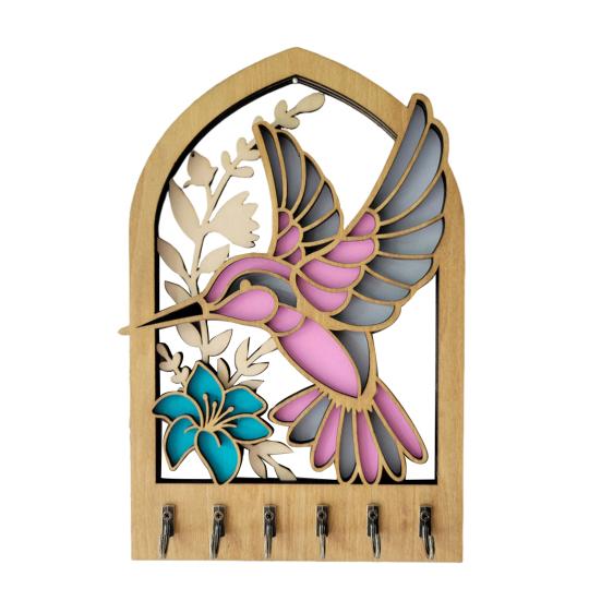 Брелок колибри с 6 металлическими крючками, гладкие края, деревянная птица без заусенцев синий