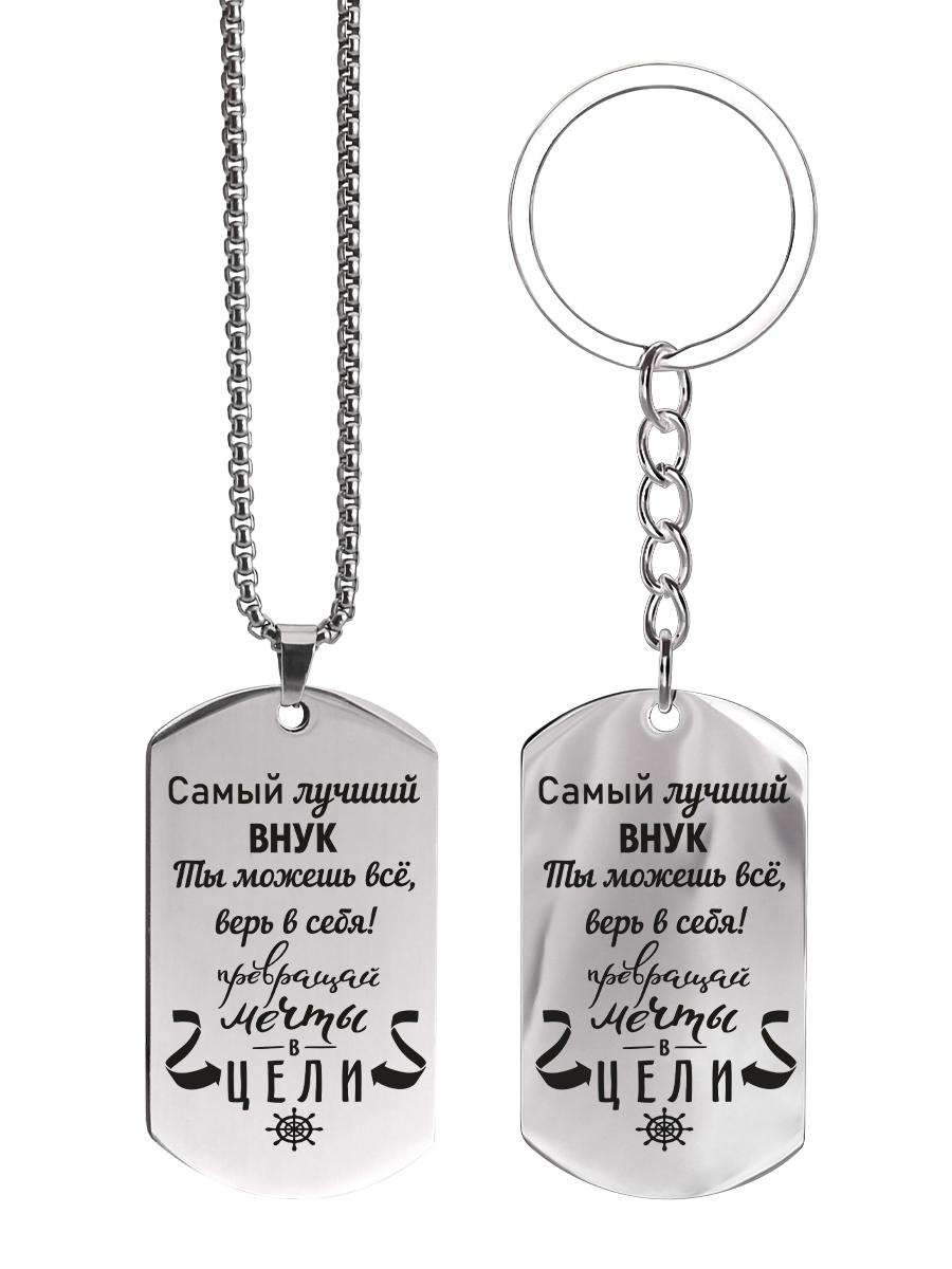 Брелок и ожерелье из нержавеющей стали, подарок для моего внука, гравированная эмблема, Идеальный подарок для мужчин, пар, парня, семьи и друзей 6*3*0.2cm разноцветный