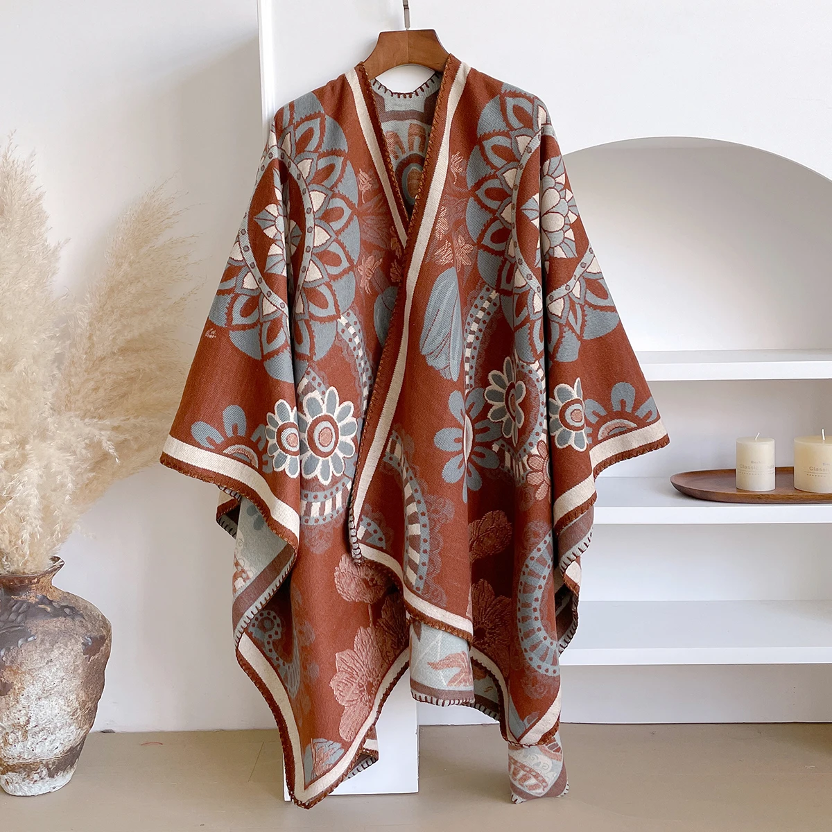 Брендовая модная женская зимняя теплая кашемировая шаль с цветочным принтом масляной живописи, толстая накидка из пашмины, пончо и Echarpe