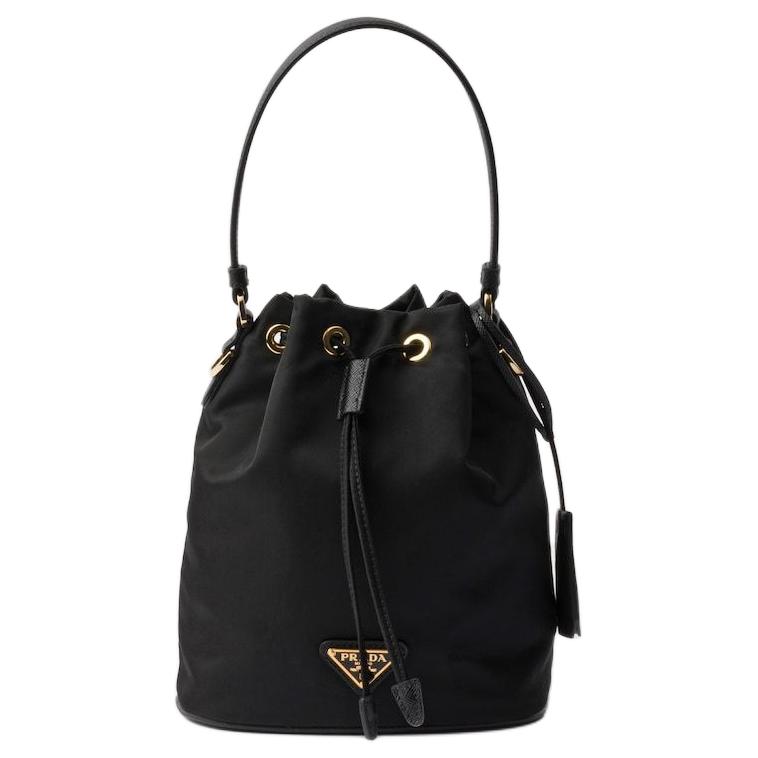 PRADA Реедишн Тканевая с кожаной отделкой сумка ведро Мини женская черная